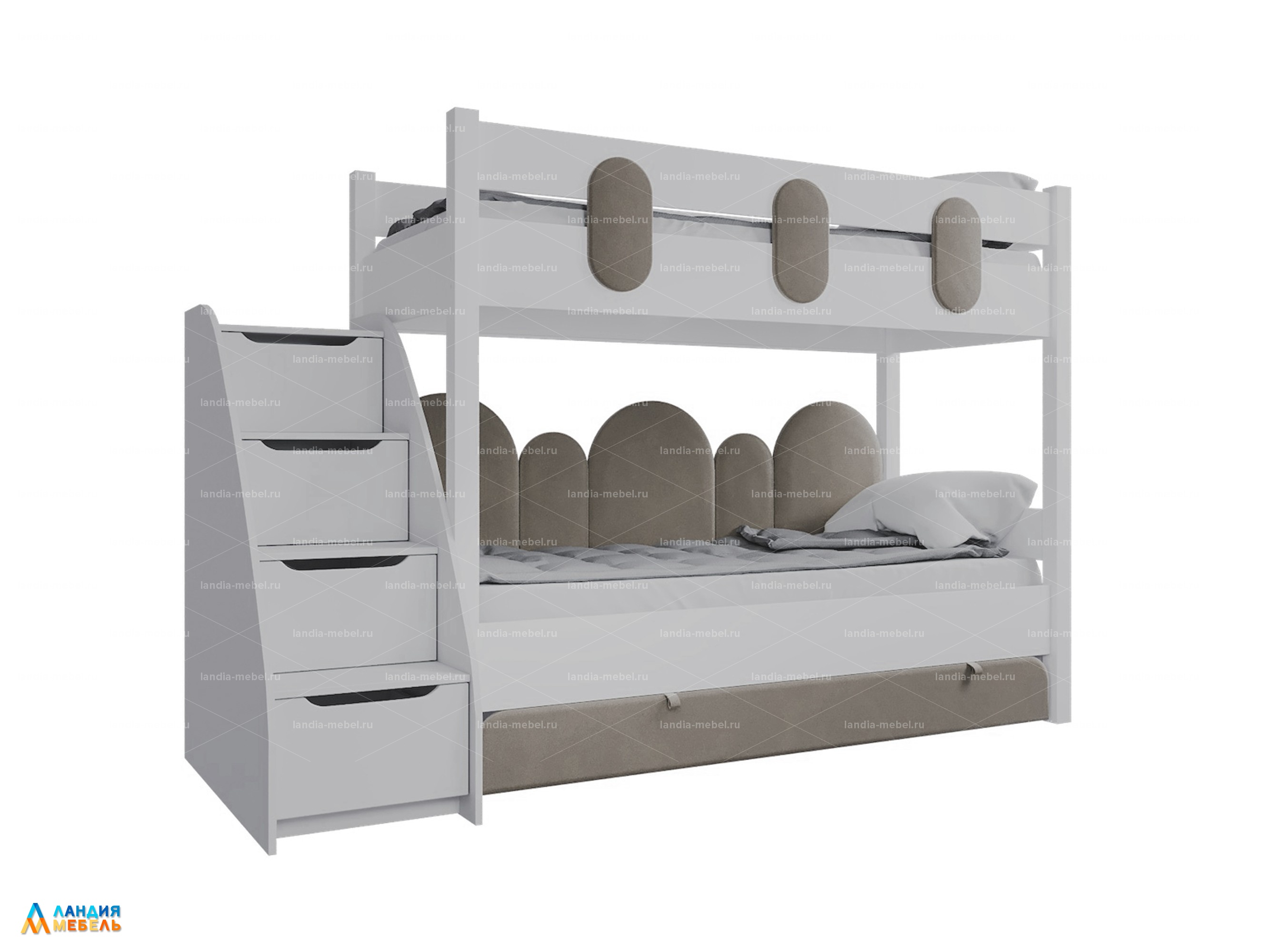 Кровать 2х-ярусная №6 с тумбой цвет: белая