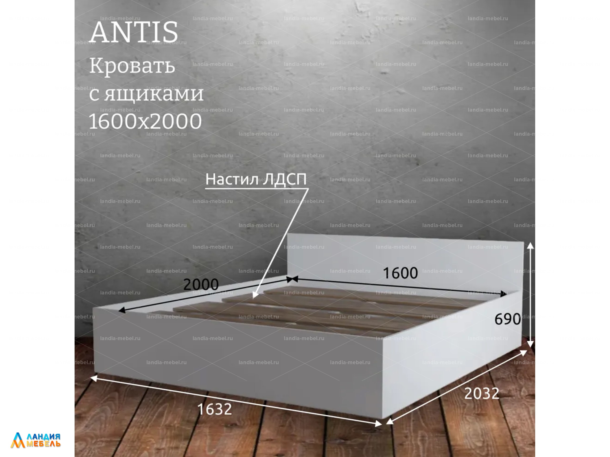 Кровать "ANTIS" КР2Я 158 1600 мм цвет: белая с ящиками