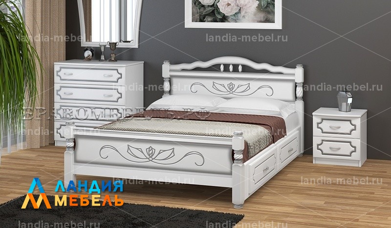 Кровать "Карина-5" изготовлена из массива сосны с элементами из МДФ.