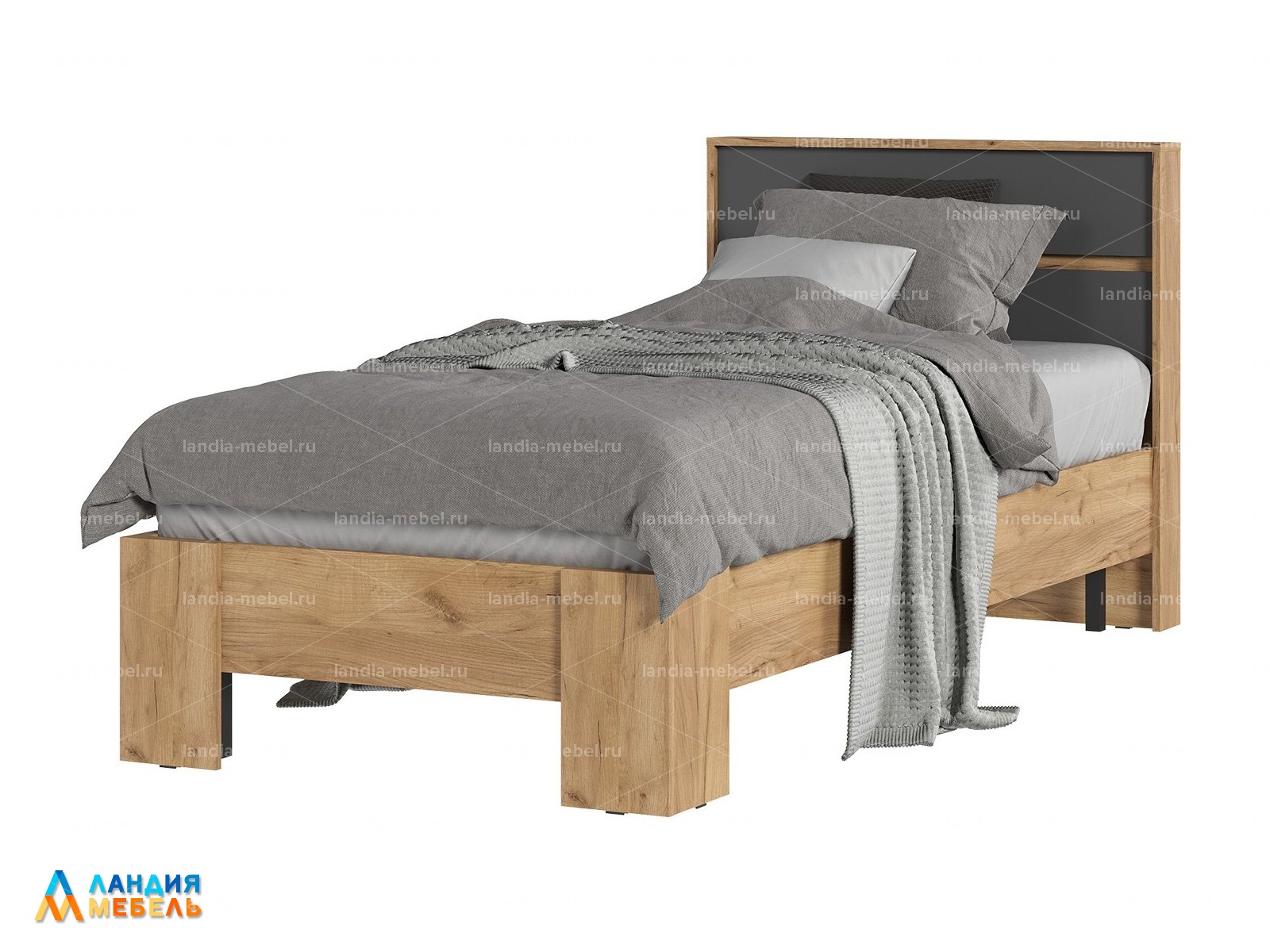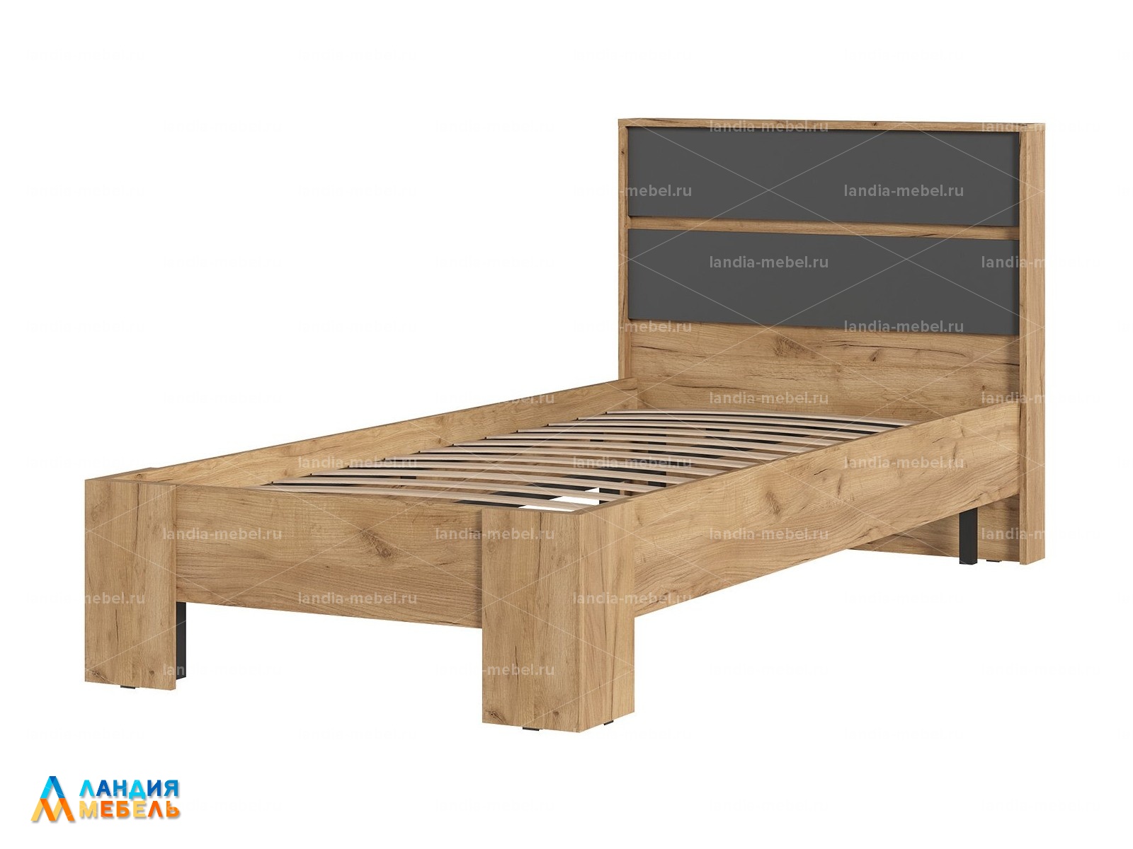Кровать "ХЕЛЕН" КР01 0,9*2,0 цвет: серый графит/дуб крафт