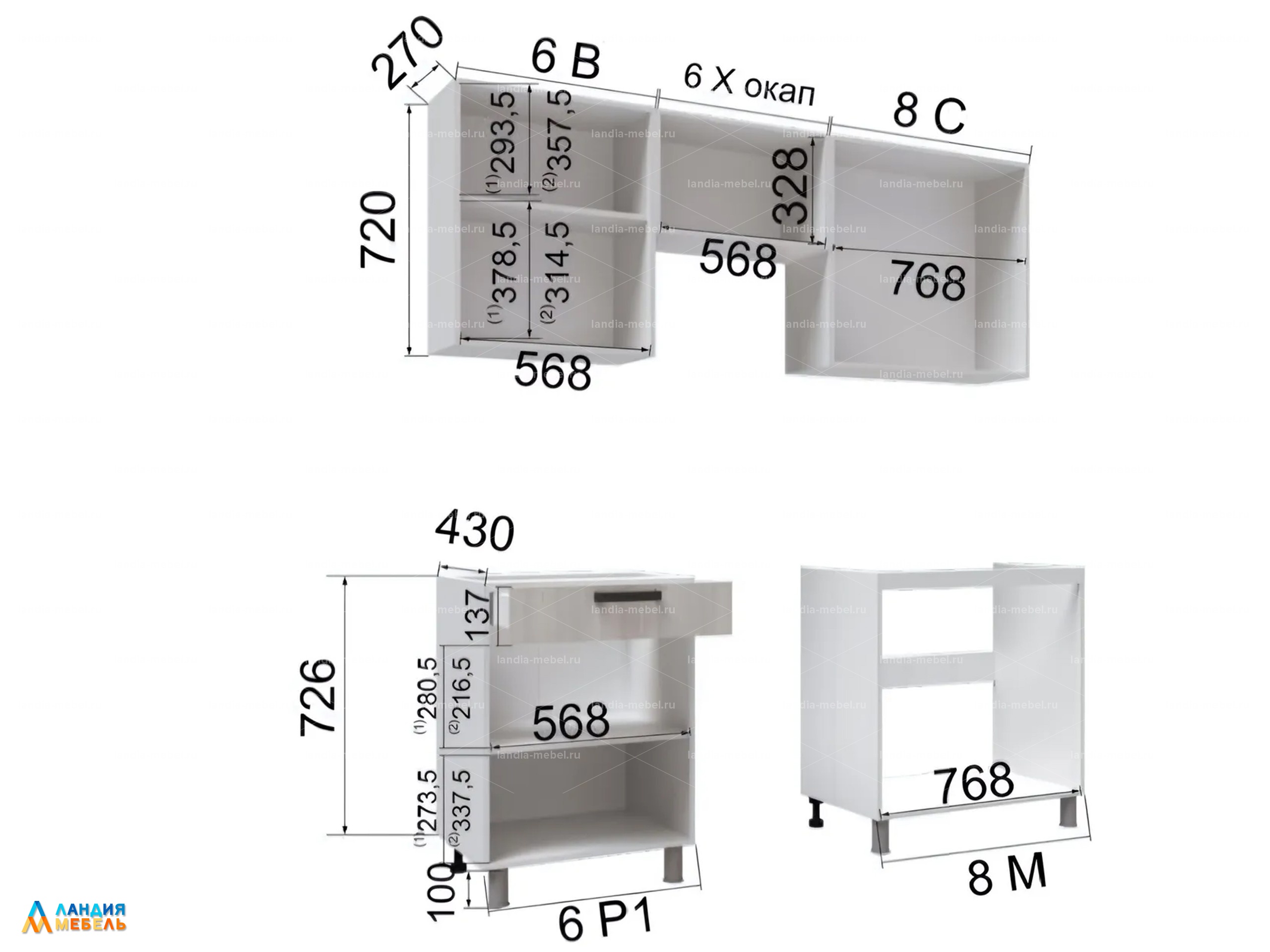Кухонный гарнитур "Гритс" 2 м цвет: камень светлый/темный