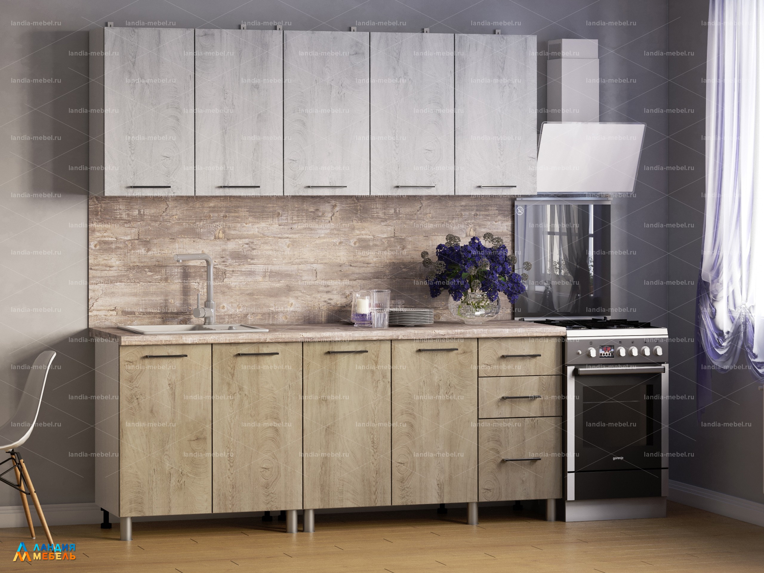 Кухонный гарнитур "Палермо" 2 м цвет: дуб остин серый/беж