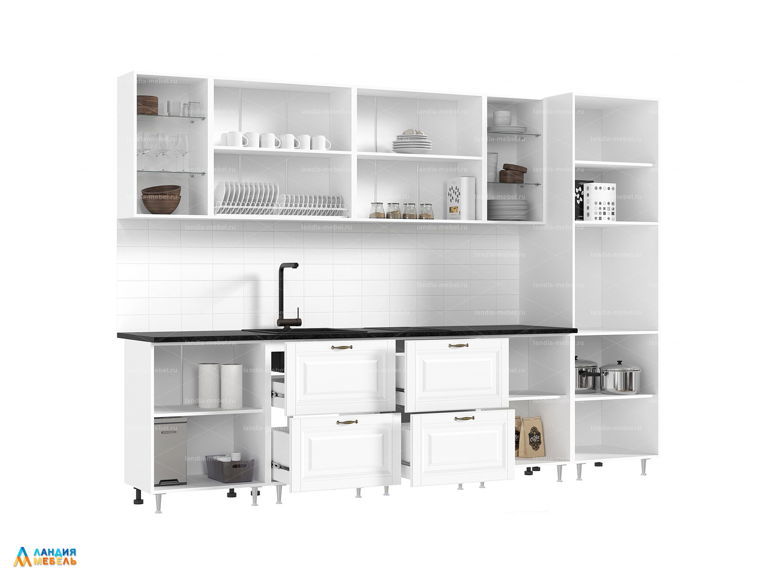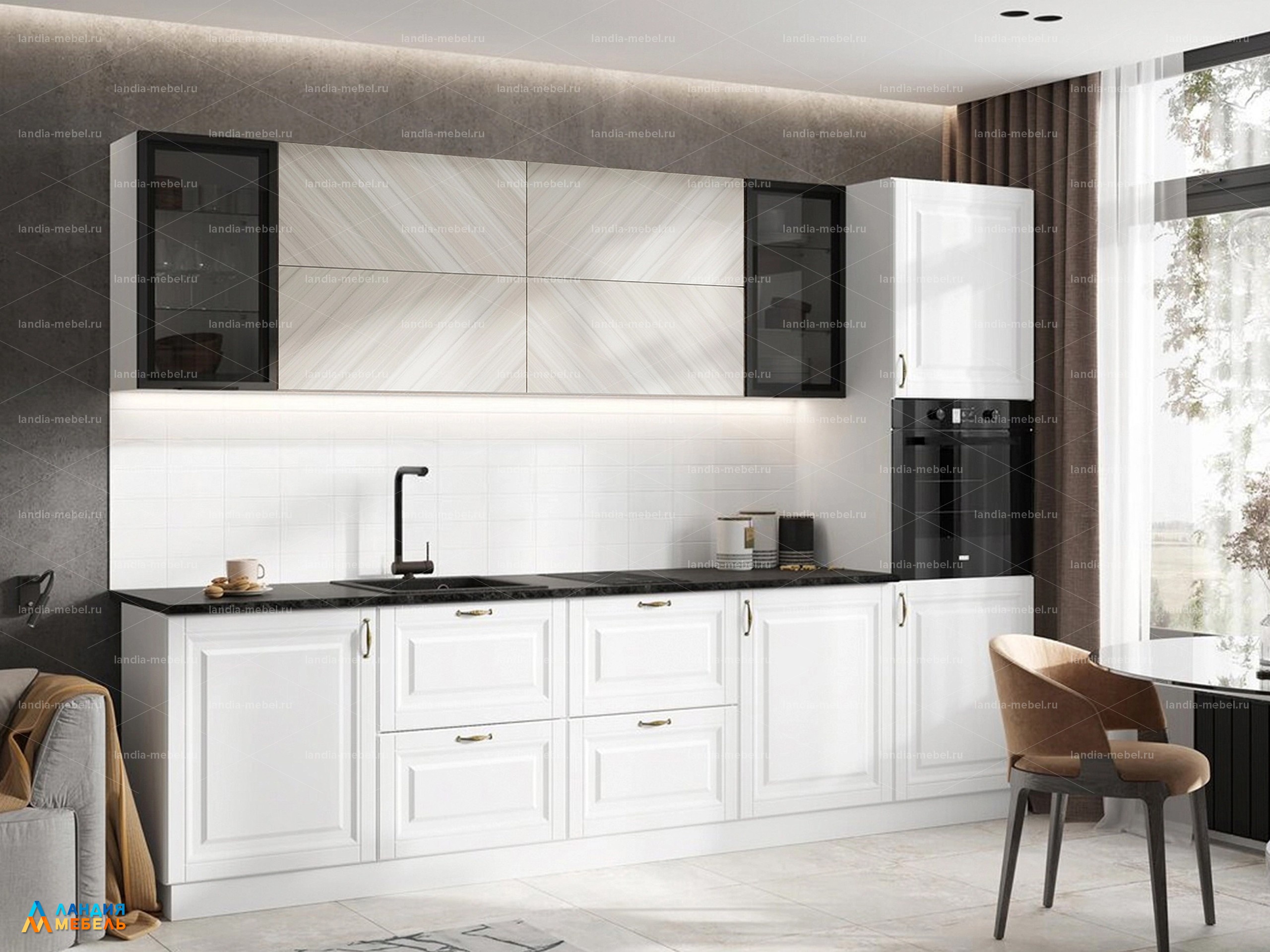 Кухонный гарнитур "Престиж" 3,0 м компоновка 1 цвет: браш вайт/прайм жем./бел.