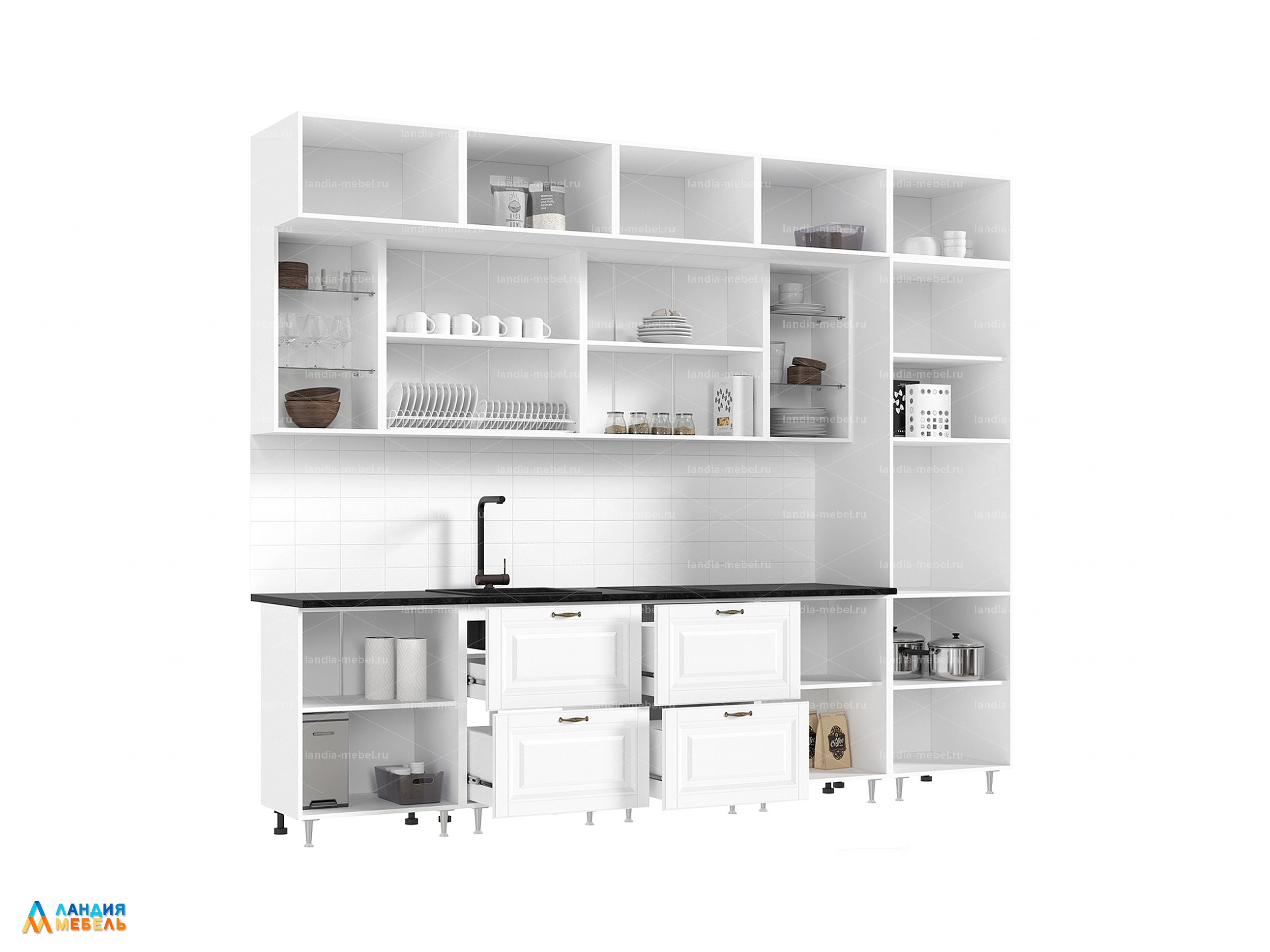 Кухонный гарнитур "Престиж" 3,0 м компоновка 2 цвет: браш вайт/прайм жем./бел.