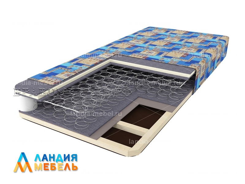 Наполнение: пенополиуретан, ватин, спанбонд, пружинный блок "Боннель", каркас из ДВП и массива сосны.