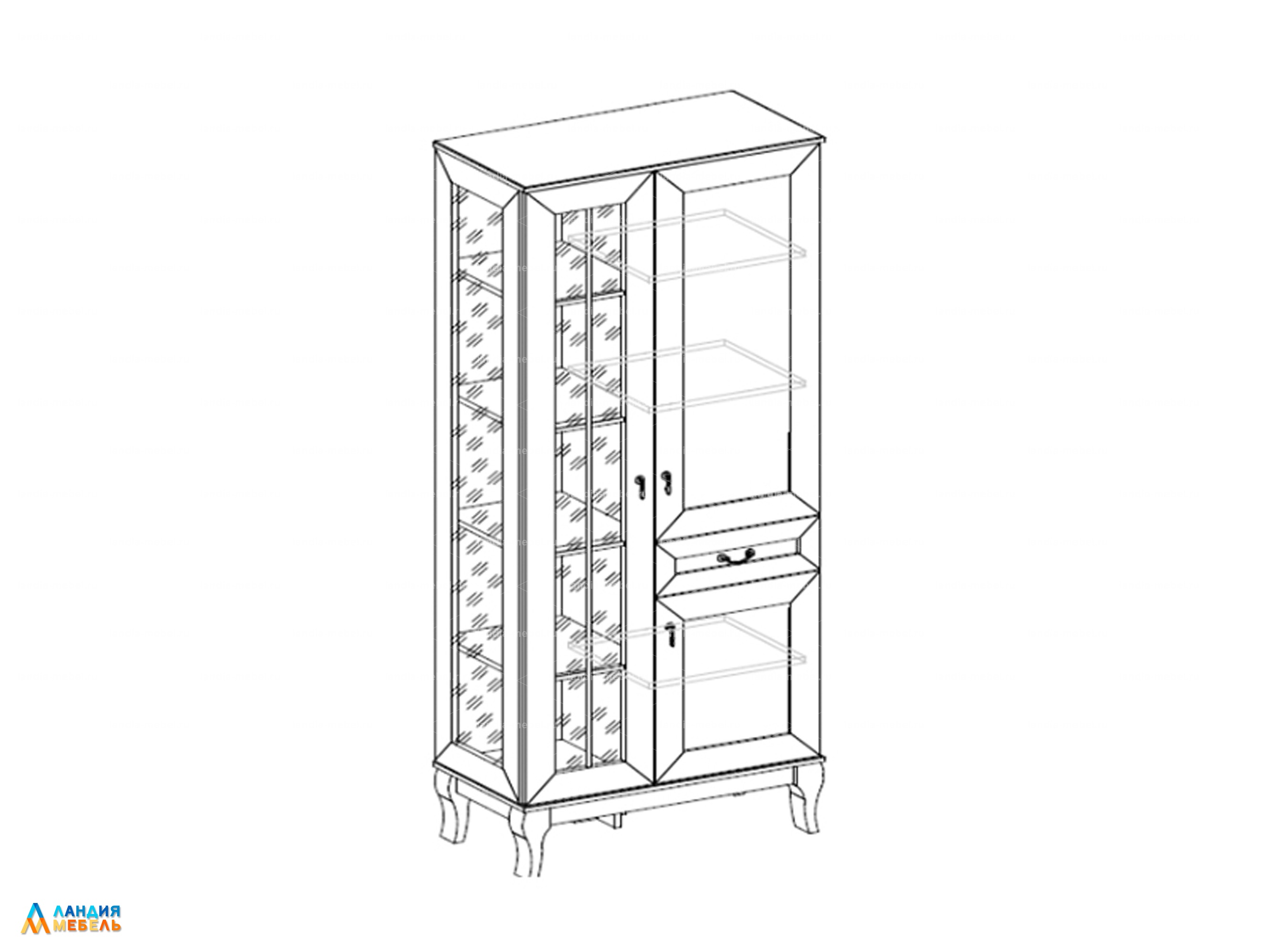 Материал: ламинированный ДСП, МДФ рамка, стекло с витражным рисунком, ручки капли, высокие ножки МДФ