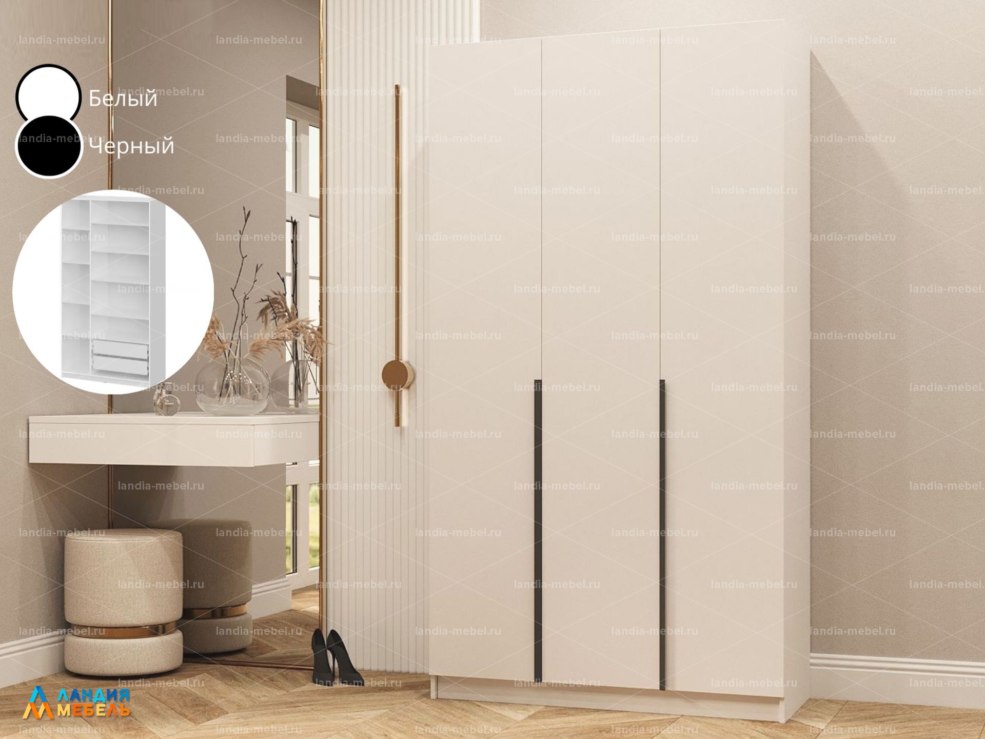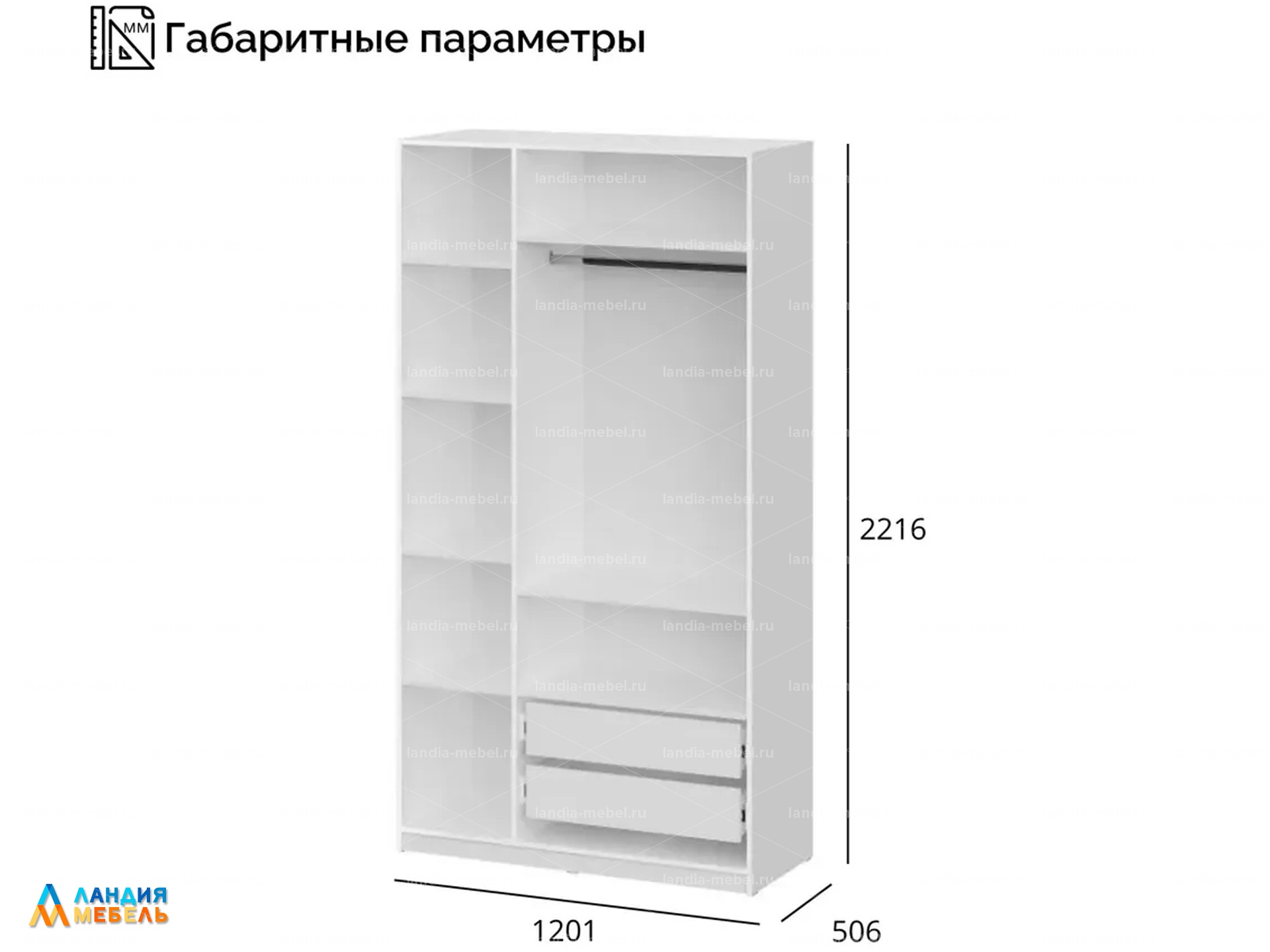 Шкаф оснащён полками и ящиками для одежды, что позволяет организовать ваше пространство максимально эффективно.