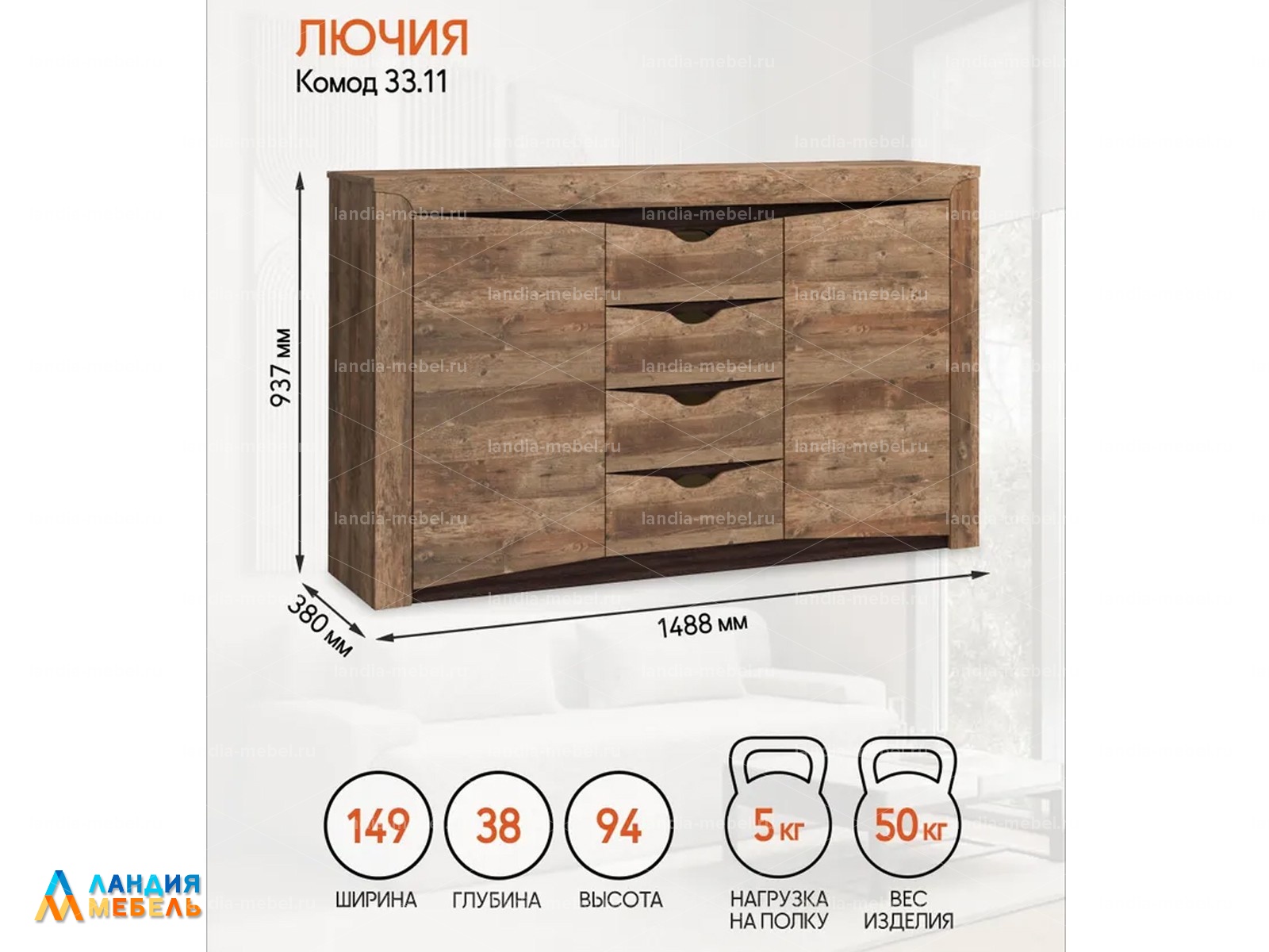 Спальня "Лючия" Комод 33.11 цвет: кейптаун/венге