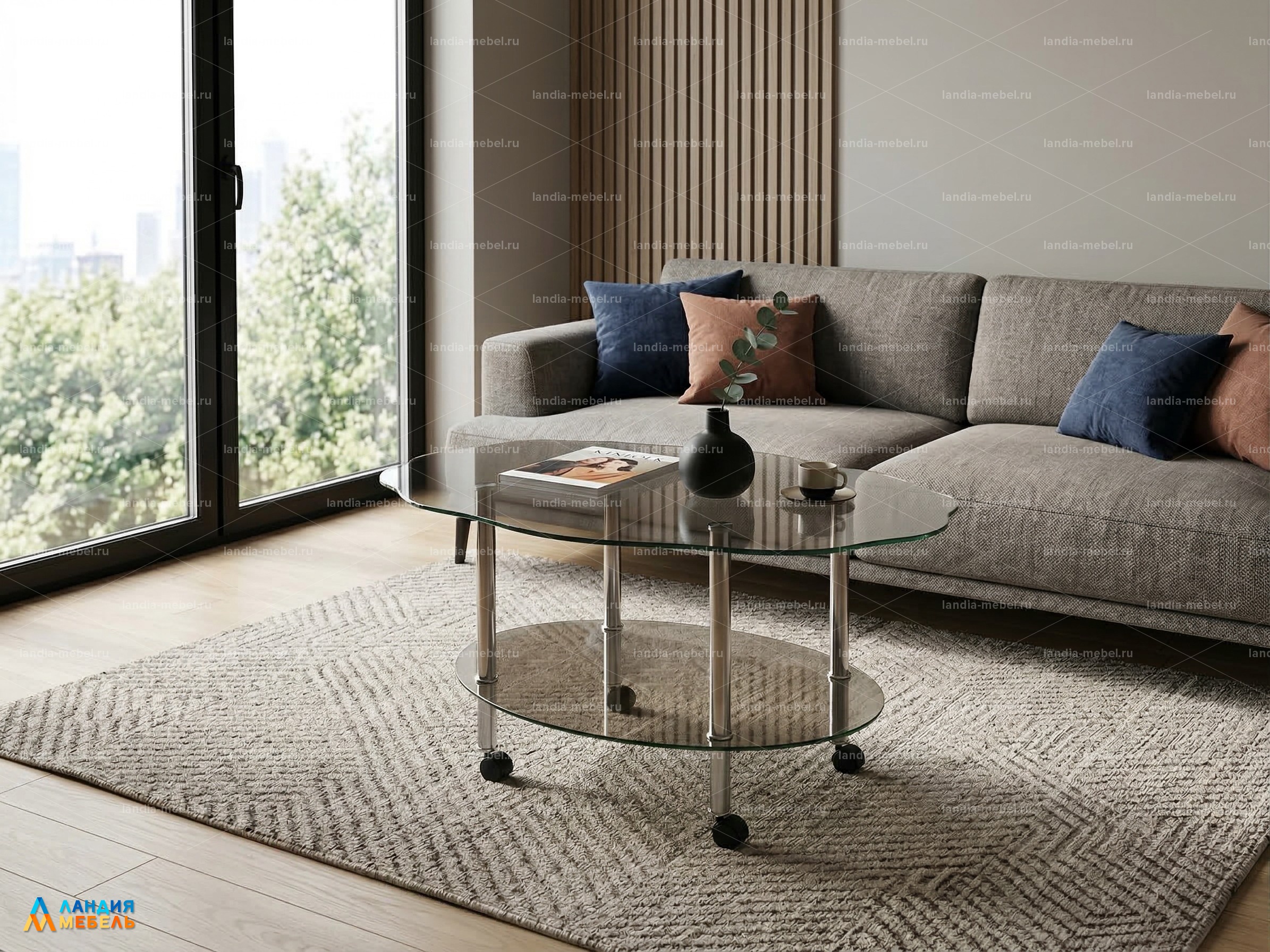 Материал: закаленное стекло, хромированные опоры.